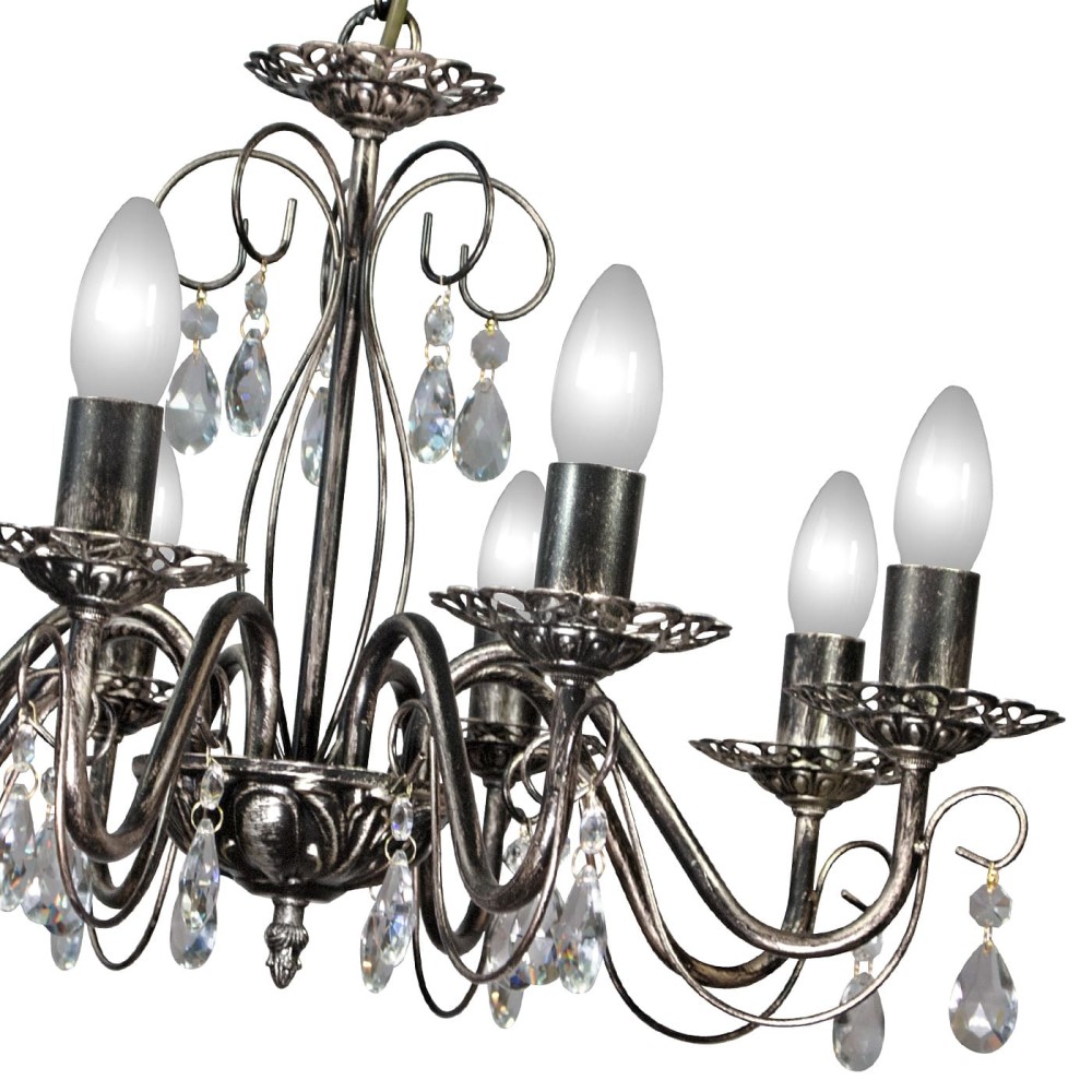 • Хрустальные подвески – символ роскоши: Декоративные хрустальные подвески придают люстре неповторимый шарм и добавляют ей изысканности. Их прозрачность и блеск создают эффектное световое шоу, отражая свет и наполняя комнату мерцающим сиянием.