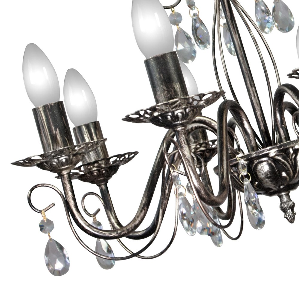 Люстра подвесная Аврора – роскошное освещение для вашего дома (8 ламп, хрусталь, черный с патиной серебра)
