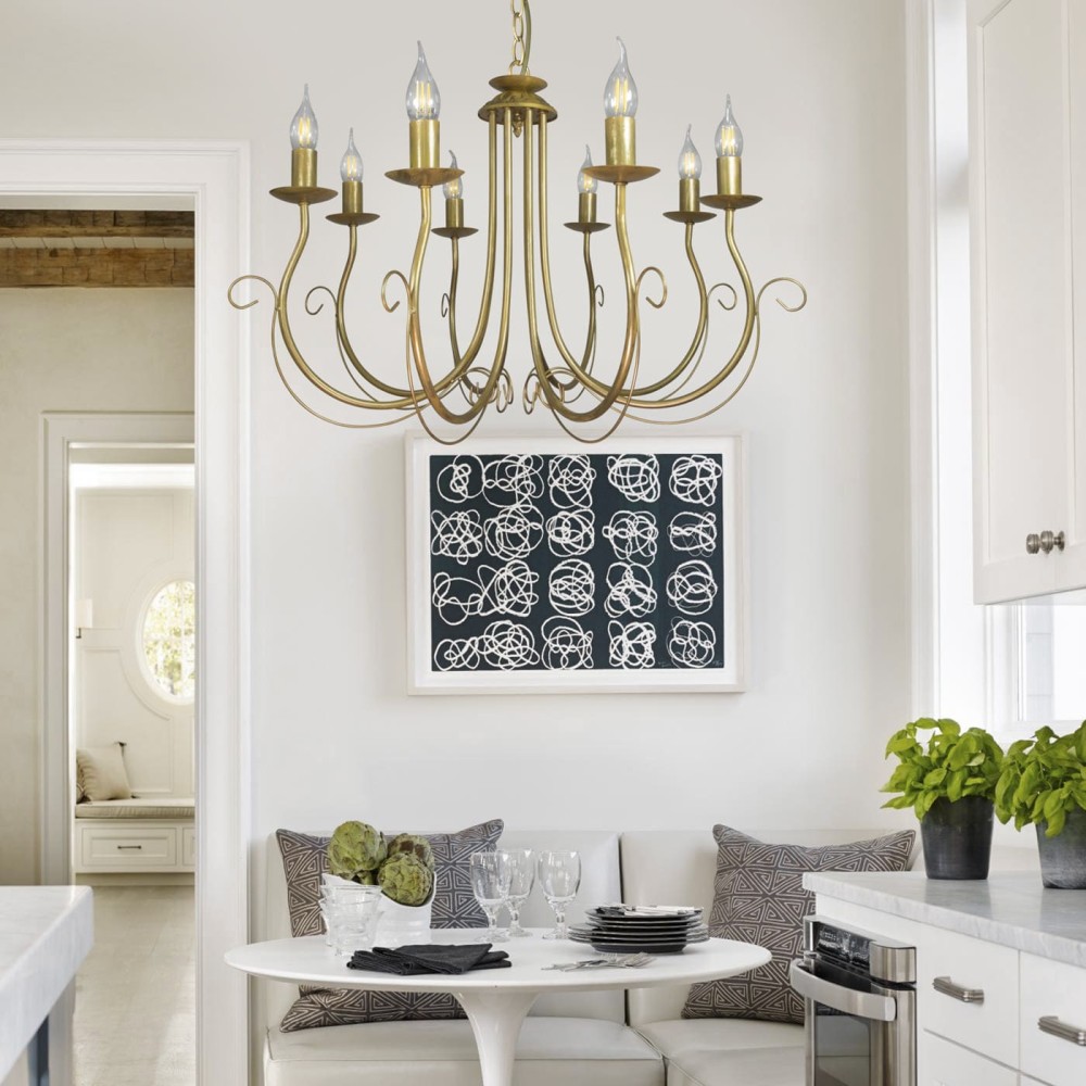 Люстра подвесная интерьерная S1227-8 – элегантное решение для вашего дома Эта роскошная подвесная люстра S1227-8 от бренда ПЕТРАСВЕТ, произведенная в России, станет настоящим украшением любого интерьера. Она сочетает в себе изысканность классического стиля с элементами неоклассики и прованса, создавая атмосферу уюта и благополучия. Идеально подходит для гостиной, столовой, спальни или коридора, обеспечивая яркое и равномерное освещение. Дизайн и Материалы: Люстра S1227-8 выполнена из высококачественного металла, покрытого патиной золота, что придает ей неповторимый блеск и глубину. Белый цвет основания подчеркивает элегантность конструкции и гармонично вписывается в различные стилистические решения. Массивное основание шириной 12 см обеспечивает устойчивость и надежность конструкции. Плавные изгибы и декоративные элементы плафона создают ощущение роскоши и утонченности. Отсутствие отдельного материала для плафона подчеркивает его структуру и позволяет сосредоточиться на изысканных деталях. Технические характеристики: Бренд: ПЕТРАСВЕТ – российский производитель светотехнических приборов, зарекомендовавший себя как надежный поставщик качественной продукции. Модель: S1063 – инновационная модель, разработанная с учетом современных требований к освещению и эстетическим предпочтениям потребителей. Тип монтажа: Подвесной – люстра легко устанавливается на потолок с помощью стандартного крюка. Тип цоколя: Е14 – стандартный цоколь, позволяющий использовать лампы накаливания, светодиодные или люминисцентные. Количество ламп: 8 – обеспечивает достаточное освещение для площади до 35 квадратных метров. Напряжение: 220 В – соответствует стандартным параметрам электросети. Размеры: Ширина: 77 см – обеспечивает широкое освещение помещения. Высота: 50-67 см – позволяет регулировать высоту люстры в зависимости от высоты потолка и желаемого эффекта. Размеры коробки: 20 x 40 x 40 см – удобны для транспортировки и хранения. Световой поток: 6000 лм – гарантирует яркое и комфортное освещение. Направление рассеивателя: Вверх – обеспечивает равномерное распределение света по помещению, создавая приятную атмосферу. Срок гарантии: 7 лет – подтверждает надежность и качество продукции от ПЕТРАСВЕТ. Универсальность и Возможности: Люстра S1227-8 совместима с различными типами ламп, что позволяет подобрать оптимальное решение для освещения вашего дома. Вы можете использовать лампы накаливания для создания теплого и уютного света, светодиодные лампы для экономии электроэнергии и увеличения срока службы, или люминисцентные лампы для получения яркого и равномерного освещения. Преимущества: Российское производство: Поддержка отечественного производителя – вклад в развитие российской экономики. Высокое качество материалов: Использование металла и патины золота гарантирует долговечность и привлекательный внешний вид. Элегантный дизайн: Сочетание классического и неоклассического стилей делает люстру универсальной для различных интерьеров. Универсальность: Совместимость с различными типами ламп позволяет подобрать оптимальное решение для освещения. Гарантия качества: Срок гарантии 7 лет подтверждает надежность продукции. Удобство установки: Простой монтаж с использованием стандартного крюка. Оптимальная площадь освещения: Подходит для пом