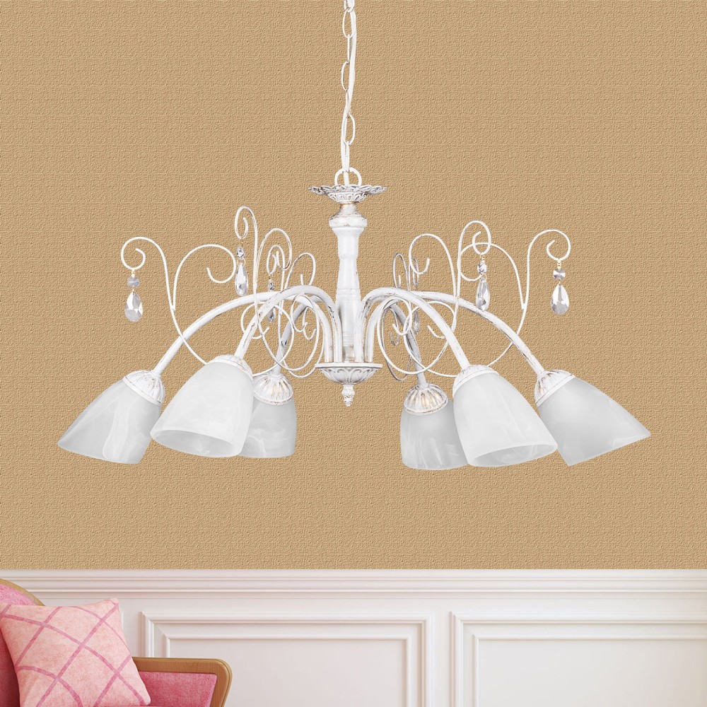 Люстра подвесная 6 плафонов S2020-6 – Изысканность и Роскошь для Вашего Интерьера Эта роскошная люстра S2020-6 от бренда ПЕТРАСВЕТ – идеальное решение для создания атмосферы элегантности и уюта в любом помещении. Предназначенная для жилых комнат, она станет безусловной звездой вашего интерьера, подчеркивая его стиль и добавляя нотку классической красоты. Произведенная в России, эта люстра сочетает в себе высокое качество, надежность и неповторимый дизайн. Основные характеристики и преимущества: Изысканный Дизайн: Люстра S2020-6 воплощает в себе идеальное сочетание стилей – классики, неоклассики и прованса. Белоснежный металлический каркас с патиной золота придает ей благородный и утонченный вид. Хрустальные подвески не только добавляют визуальный интерес, но и превосходно рассеивают свет, создавая мягкое и приятное освещение. Элегантный дизайн делает эту люстру универсальной – она будет уместна в гостиной, столовой, спальне или даже в кабинете. Роскошное Освещение: Люстра оснащена шестью плафонами, выполненными из высококачественного стекла. Они обеспечивают яркое и равномерное освещение, идеально подходящее для различных задач – от создания романтической атмосферы до комфортного чтения. Возможность использования различных типов ламп – накаливания, светодиодных или люминисцентных – позволяет подобрать оптимальное решение, отвечающее вашим потребностям и предпочтениям. Высокое Качество и Надежность: Произведенная в России, люстра S2020-6 изготовлена из прочных и долговечных материалов. Металлический каркас обеспечивает устойчивость и надежность конструкции, а хрустальные подвески – долговечность и красоту. Благодаря использованию качественных компонентов, люстра рассчитана на долгий срок службы и минимальное обслуживание. Подвесной Тип Монтажа: Люстра устанавливается на потолок с помощью крюка, что обеспечивает удобство монтажа и демонтажа. Регулируемая высота позволяет адаптировать ее к различным типам потолков. Гарантия Качества: ПЕТРАСВЕТ предоставляет гарантию на люстру сроком 7 лет, что является подтверждением высокого качества продукции и заботы о клиентах. Размеры и Технические Характеристики: Ширина основания: 12 см – обеспечивает устойчивость и стабильность конструкции. Ширина: 64 см – создает достаточное пространство для рассеивания света и визуально расширяет пространство. Высота: 45-62 см – позволяет регулировать высоту люстры в соответствии с размерами помещения и личными предпочтениями. Размер коробки: H: 30 см, L: 32 см, W: 31 см – удобны для транспортировки и хранения. Световой Поток: 4500 лм – обеспечивает достаточное освещение для помещения площадью 18-25 м?. Это оптимальное значение для комфортного и функционального освещения. Тип цоколя: Е14 – стандартный и широко распространенный тип цоколя, что упрощает поиск и замену ламп. Универсальность: Благодаря возможности использования различных типов ламп, люстра S2020-6 подходит для любых интерьеров и стилей. Она будет прекрасным дополнением к современному, классическому или провансальскому интерьеру. Эстетическое Наслаждение: Хрустальные подвески не просто освещают помещение, но и создают игру света и тени, добавляя в интерьер нотку волшебства и романтики. Патиновая золотая отделка придает люстре благородный и утонченный вид, подчеркивая ее изысканн